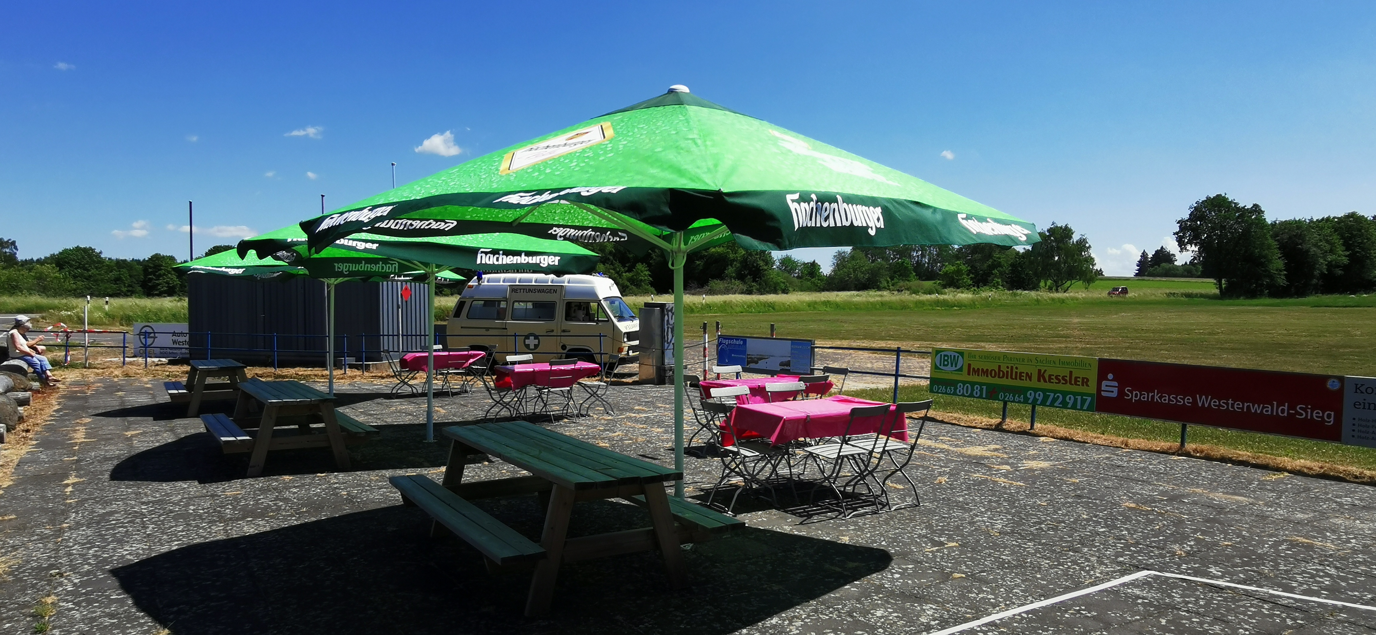 Zu einem beliebten Zwischenstopp für Durchreisende aller Art hat sich unser Imbiss Fly-In direkt an der Landebahn entwickelt. Mit einer großzügigen sonnengeschützten Terrasse und einem Angebot an Eis, Waffeln, Kuchen, Würstchen und Getränken lädt der Imbiss zum Verweilen ein, während sich der Flugbetrieb direkt aus nächster Nähe verfolgen lässt.