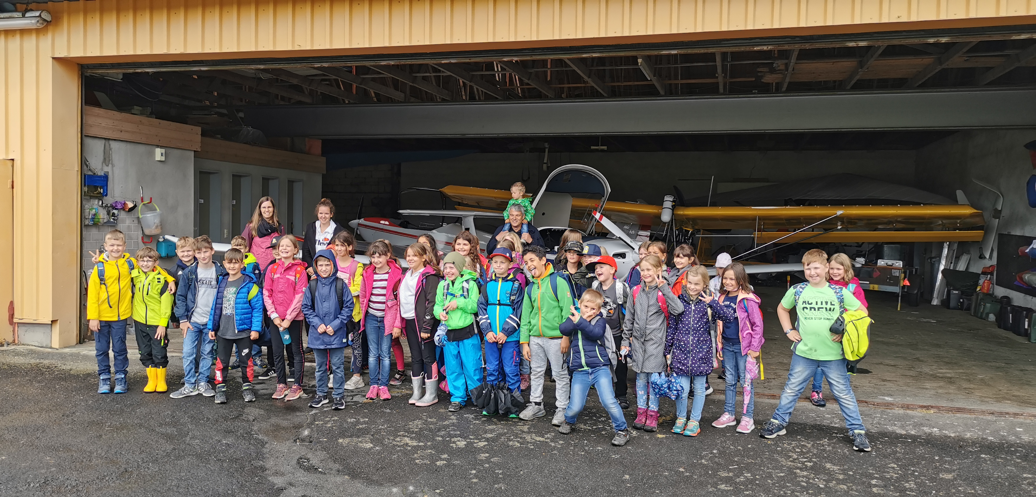 Die Klasse der 2a und 2b der Grundschule Höhn besuchten am 06. Juli den Flugplatz Ailertchen. Nachdem die 44 Schüler mit ihren vier Lehrern von Höhn nach Ailertchen gewandert waren frühstückten sie in der Fliegerklause. Um 9:30 Uhr startete das Besuchsprogramm. Steffen Zuleger und Ralf Schmidt zeigten den Schülern die Start- und Landebahn, den Turm und die Hangars mit den Flugzeugen. Jede Menge Erklärungen und Informationen erstaunten nicht nur die Schüler. Am Schluß durfte sich jeder Schüler auch noch in ein Flugzeug setzen. Um 11 Uhr traten die beiden Schulklassen ihre Rückwanderung an.